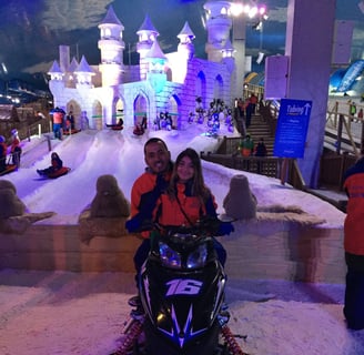 Logo cedo, fomos conhecer o famoso Snowland, o primeiro parque de neve indoor das Américas. O cenário é encantador e cheio de atrações para quem quer curtir o frio de forma divertida: escorregamos nas boias gigantes, visitamos a Montanha de Neve, andamos pelo vilarejo temático e nos surpreendemos com a sensação de estar no meio de uma estação de esqui europeia — com direito a temperaturas de até -5°C. O parque oferece roupas térmicas, mas é bom ir com roupas quentinhas por baixo.