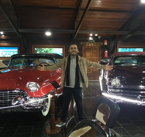 À tarde, voltamos a Gramado para um momento nostálgico no Hollywood Dream Cars, um museu com carros clássicos das décadas de 20 a 60. O ambiente é todo temático, com iluminação especial e trilha sonora retrô, nos transportando direto para os tempos dourados do cinema e do automobilismo. É um passeio encantador, especialmente para quem ama história e design vintage.