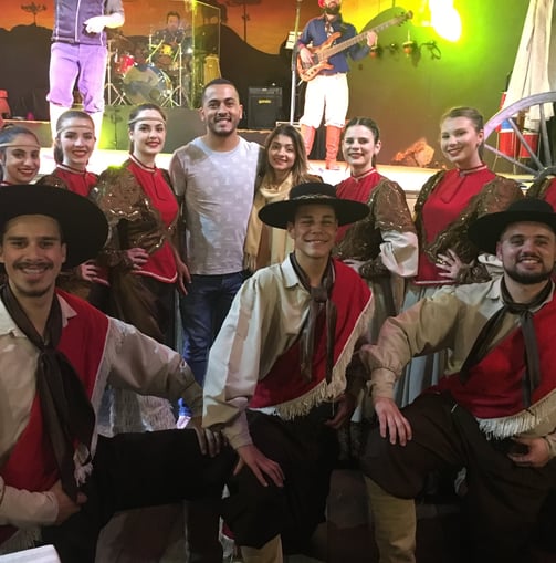 À noite, encerramos o dia com a tradicional e animada Noite Gaúcha. Uma verdadeira festa cultural, com churrasco típico, buffet completo, vinho liberado, apresentações de dança tradicional e música ao vivo. E o ponto alto da noite: o Bruno subiu no palco e dançou com os personagens, arrancando aplausos e boas risadas! Foi um momento leve, divertido e que fechou o dia com chave de ouro.
