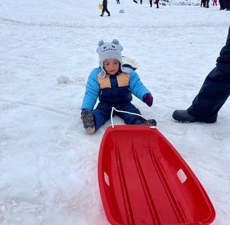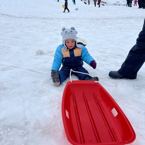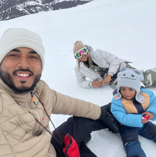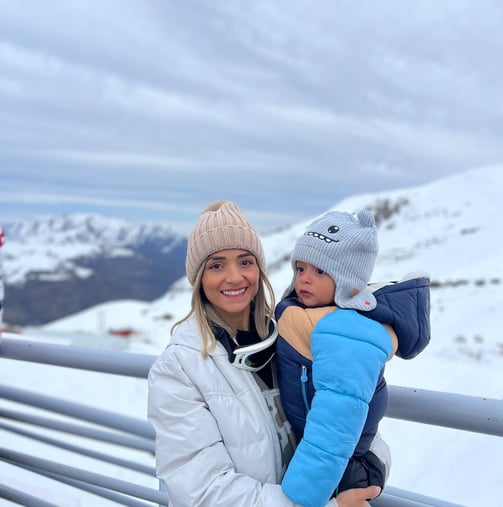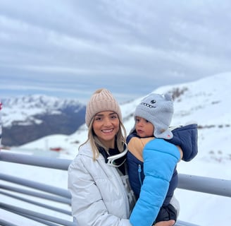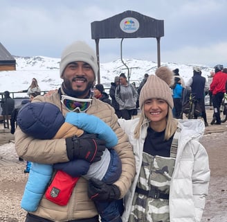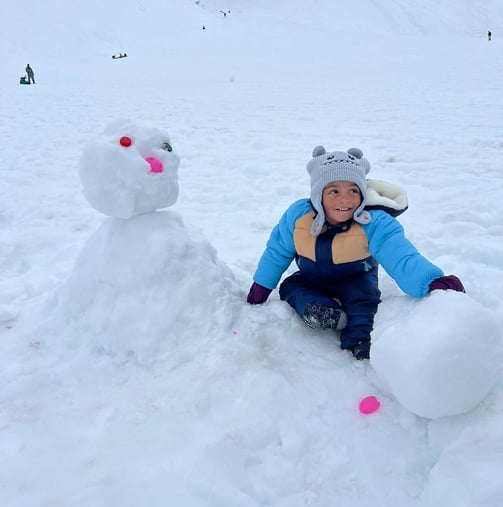 Tiramos muitas fotos, tomamos chocolate quente e aproveitamos para viver momentos simples e inesquecíveis em família. Descemos brincando de esquibunda, demos muitas risadas, e com o Miguel fizemos nosso primeiro boneco de neve juntos! Nos jogamos na neve como se fôssemos crianças também — e foi maravilhoso.