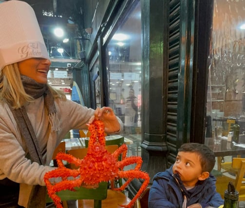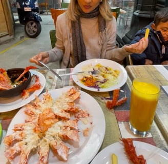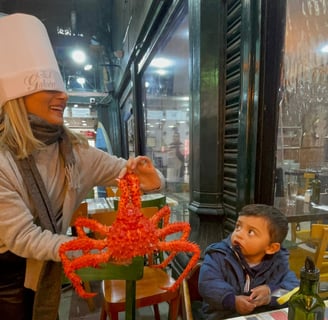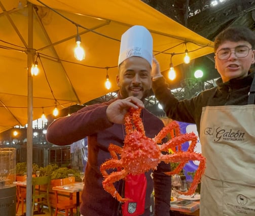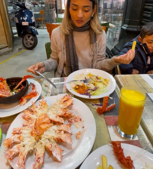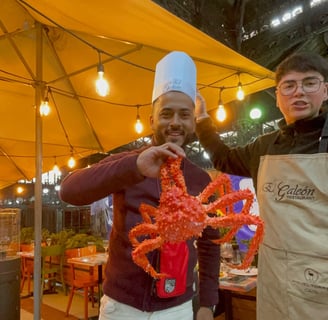 Começamos o dia com uma visita ao tradicional Mercado Central de Santiago, um lugar vibrante, cheio de cores, aromas e sabores. Por lá, nos aventuramos a experimentar a famosa centolla gigante — um caranguejo enorme e super saboroso, encontrado apenas nos mares do Chile, Antártica e Alasca. Foi uma experiência única e deliciosa, daquelas que ficam pra sempre na memória (e no paladar!).