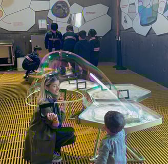 Pela manhã, visitamos o Museu Interativo Mirador (MIM), um espaço incrível, pensado especialmente para famílias com crianças. Tudo no museu é feito para explorar com as mãos, os olhos e a curiosidade: experiências com som, luz, movimento, corpo humano, matemática... Miguel ficou encantado! E a gente também se divertiu como criança. É um passeio leve, educativo e muito dinâmico, que vale muito a pena.
