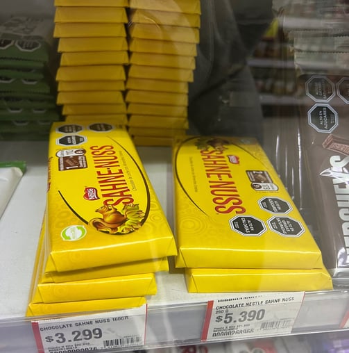 Antes de voltar ao hotel, ainda demos uma passada para comprar lembrancinhas, e foi aí que nos deparamos com uma descoberta maravilhosa: o chocolate Sahne-Nuss, super tradicional no Chile. Nos apaixonamos na primeira mordida! E, claro, levamos alguns (vários!) pra casa.